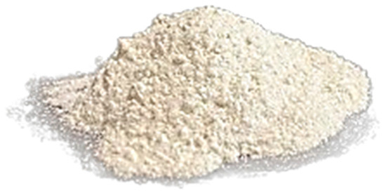 In this study, fresh concrete washing fine comes from a precast concrete plant washing process. Preparation of washing fines for use as supplementary cementing materials (SCMs) begins with their collection from production sites and storage in hermetically sealed containers at room temperature. The fines are then dried at 65 ± 5 °C to a constant mass, ensuring complete dewatering. The dried sludge is then ground by hand to obtain a fine powder, which is sieved to 100 μm to remove the coarsest particles; see Figure 2. Wash fines can be used without heating, but heating is chosen to make mixing easier.