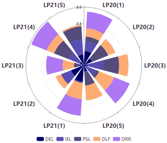 To illustrate the score distribution of different indices among LV users and the weight of each indicator, 10 LV users connected to LP20 and LP21 are taken as examples.