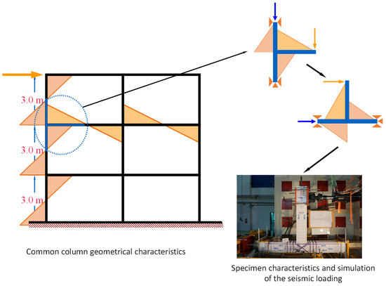 Column characteristics of common RC frame structures and simulation of the seismic loading in the tested specimens.