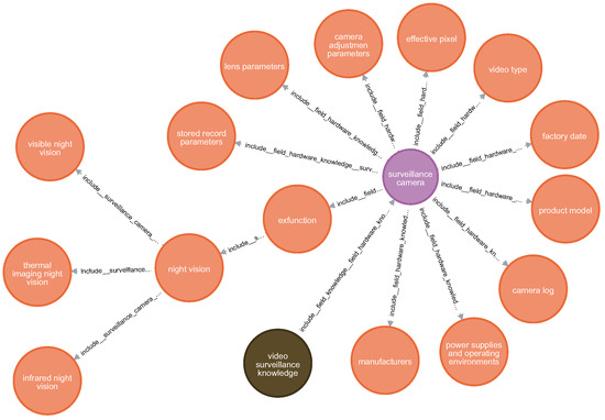 The logical dependency layer graph focuses on semantic parsing functions and default information. For this policy, the semantic parsing function to be utilized is to systematically explain the natural language structure of “hardware x should have y function”. Functions can be written to implement the following functions: if the y function associated with hardware x is not in the network information layer graph and the y function associated with hardware x is in the security knowledge layer graph, find the function associated with y function in the security knowledge layer graph using the “‘include’ regularization form”. This function can be used to search for the three sub-functions of “night vision function” in the security knowledge layer graph, namely “visible night vision”, “infrared night vision”, and “thermal imaging night vision”. These are represented using cypher-like statements, as follows: