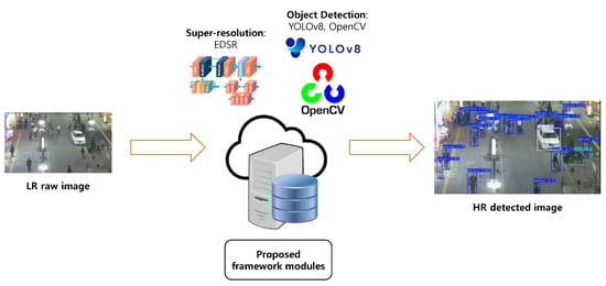 As a practical consideration, we conduct experiments to analyze the SR effect on the MAR system in terms of the latency and object detection accuracy. We implement all modules, including our proposed framework, on the MEC side using Python and PyTorch. Specifically, to establish a practical MAR and SR environment, we implement the object detection module using the OpenCV library and the ultralytics YOLOv8 model [29], while the SR module is implemented using the EDSR model [30]. The client node sends object detection requests to the proposed framework, and after the MEC server node processes the object detection tasks based on the SR decision from our framework, the client displays the results using the OpenCV library. The overview of our implementation is shown in Figure 4.