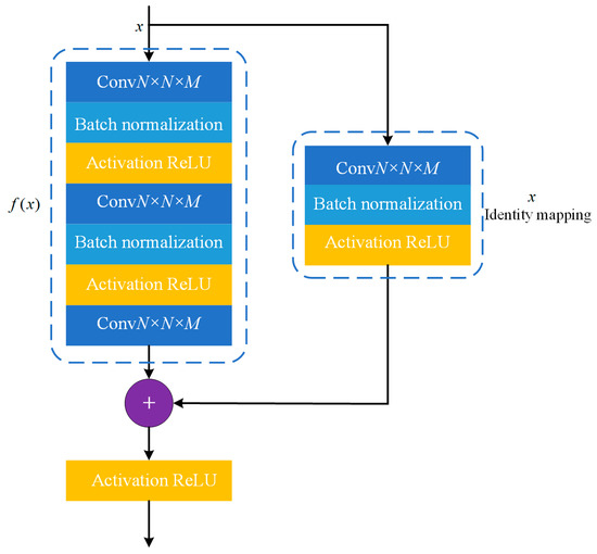 where x is the input, y is the output, is the parameter of the residual function, and represents the residual function to be learned, typically composed of several layers of neural networks. For a two-layer residual block, the specific form is