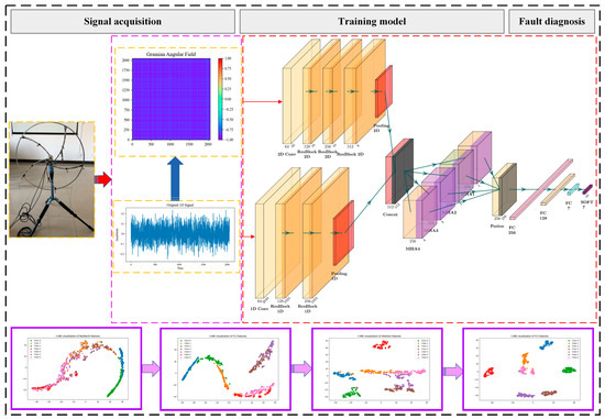 By integrating the above modules, this paper combines GAF, ResNet1D, ResNet2D, and the multi-head self-attention mechanism to propose the CRAMNet network model. The specific technical roadmap of the CRAMNet is shown in Figure 4.