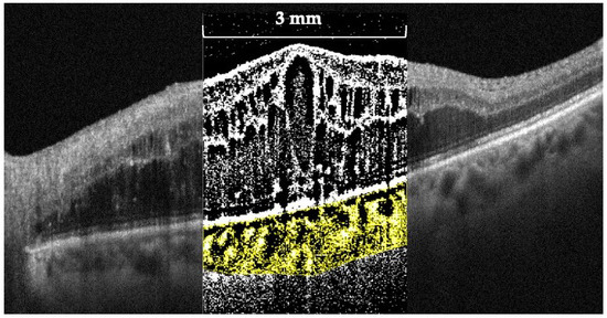 - Sonoda, S.; Sakamoto, T.; Yamashita, T.; Uchino, E.; Kawano, H.; Yoshihara, N.; Terasaki, H.; Shirasawa, M.; Tomita, M.; Ishibashi, T. Luminal and Stromal Areas of Choroid Determined by Binarization Method of Optical Coherence Tomographic Images. Am. J. Ophthalmol. 2015, 159, 1123–1131.e1. [Google Scholar] [CrossRef]