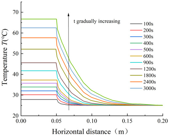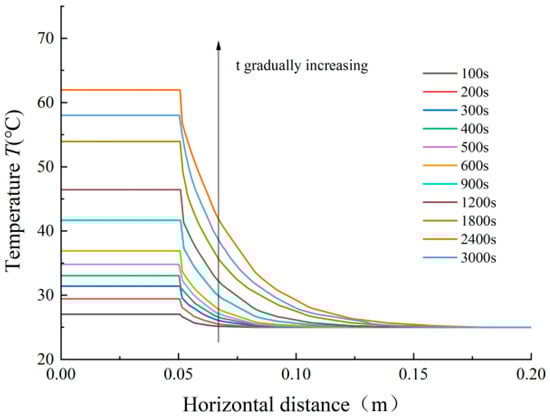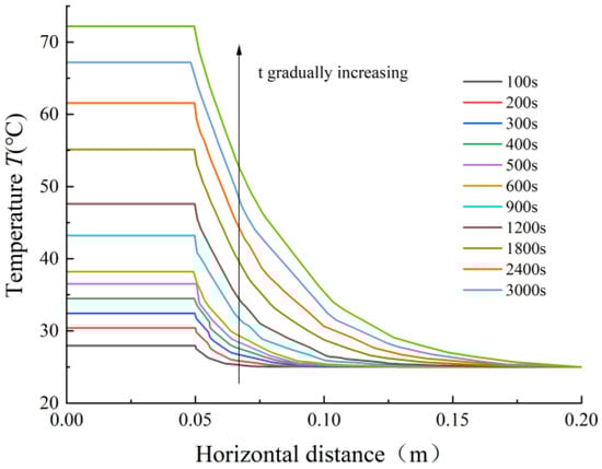 - The comparison between the numerical simulation results and indoor experimental results shows that the overall law is consistent, and the error of the two is less than 11.4%, which is lower than the deviation between the theoretical calculation results and the physical experiment. In the transition section of the interface of water and soil, heat can not only be conducted horizontally from the heat source to the water body and soil body but also within the heat source, the soil body, the water body, and the water–soil interface.