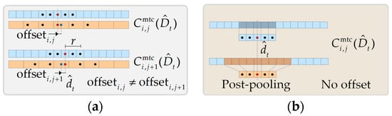 Illustrations for correlation volume pooling methods. (a) The pooling method used in the baseline [12]. (b) The proposed post-pooling method. The pooling center is kept at .