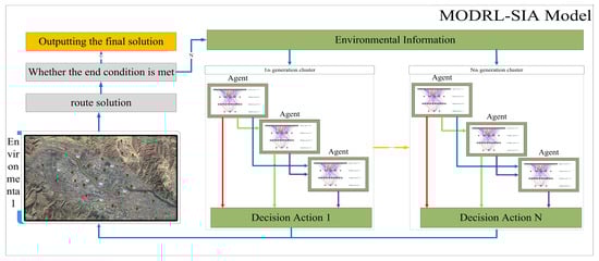 The LRPTW model addresses three interrelated subproblems: coordinating objectives, optimizing vehicle routes, and ensuring adherence to constraints. The optimization of vehicle routes is crucial, as it directly affects the satisfaction of constraints and determines the viability of the routes. To address these subproblems effectively, a collaborative approach is essential, incorporating their characteristics into the MODRL-SIA framework to produce high-quality solutions. By collectively considering these subproblems and leveraging the MODRL-SIA framework, the model efficiently generates optimal solutions that balance cost, environmental sustainability, and operational efficiency in distribution logistics.