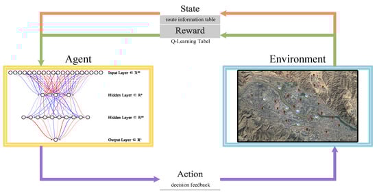 Deep reinforcement learning is more akin to a human’s mode of learning new things. Targeting the task and environment, it ultimately accomplishes the specified task by continuously learning from mistakes and refining strategies. Classic deep reinforcement learning comprises two crucial components, namely, the environment and the agent. The agent serves as the decision-maker, taking the environmental state as input and predicting the best action to modify the environment and obtain environmental rewards. The multi-objective location-routing problem is an NP-hard challenge. Additionally, the locations, quantities, and delivery times of receiving points are subject to constant change, rendering the solution more intricate [].