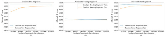 Learning Curve Diagrams: (a) Decision Tree Learning Curve; (b) Gradient Boosting Regressor Learning Curve; (c) Random Forest Learning Curve.