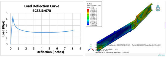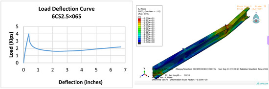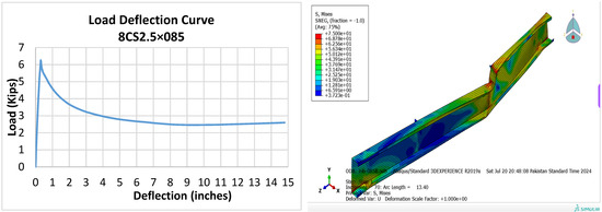 The increasing use of back-to-back built-up cold-formed steel (CFS) channel beams, valued for their cost-effectiveness and higher load capacities, is evaluated. This evaluation involves 12 experimental tests and a non-linear finite element (FE) model. Flexural strength was also affected by screw spacing [12]. The flexural behavior of CFS four-limb built-up beams with both closed and open sections was investigated through experiments and FE modeling. Four-point bending tests reveal that the open-section beams have higher ultimate load capacity than closed-section beams, with local buckling as the failure mode. Validated FE models show that flexural moment capacity increases with thickness and web depth [13]. The buckling mode is a key factor that influences the bending strength of the specimens. Also, the finite element method (FEM) is a reliable tool to obtain quite accurate results in a reasonable amount of time [14] as an optimization framework for CFS members to maximize their flexure capacity through EC3. It was found that for the same amount of material, folded-flange and super-sigma sections have a higher flexural capacity enhancement of approx. 60% and 65%, respectively [15]. A simplified finite element model was defined to analyze stresses in the components. The Bending capacity and flexural behavior were investigated numerically by using FEM and through experimental evaluations. The moment capacity of the beams decreased as the compression flange’s plate slenderness increased. The results were used to evaluate, and propose modifications to, the Direct Strength Method (DSM) for cold-formed steel specialized beams prone to local buckling [16,17,18]. Cold-formed steel (CFS) upright sections were evaluated using finite element analysis and AI/ML techniques to predict normalized ultimate load and deflection. The finite element method (FEM) provided data for analysis, and the “feature selection” method identified key factors affecting flexural strength [19].