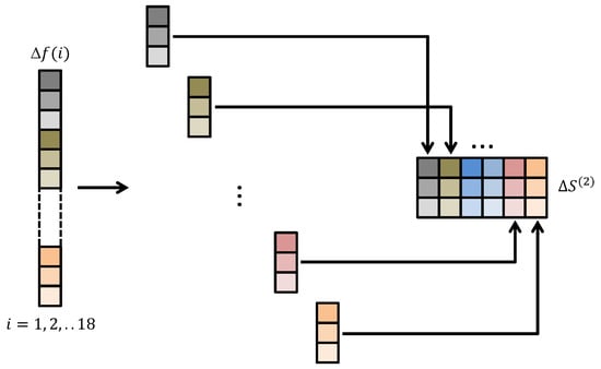 During the feedforward step, the vector f results from reshaping. Here, in the backpropagation step, the gradient is reshaped back to obtain , as schematically depicted in Figure 6.