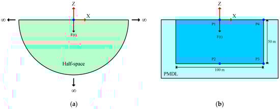 Illustration of (a) the 2-D half-space problem; (b) the PMDL truncated domain.
