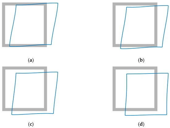 The primary focus of the comparison was on the roof displacement of the frame structure, particularly the horizontal displacement at a specific point labeled as “A” in Figure 14a–c. This comparison was crucial in determining whether the PMDL-DRM system could accurately replicate the behavior of the structure under seismic loading.