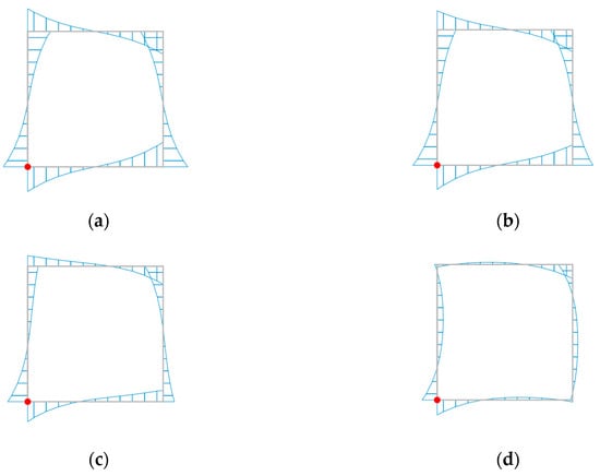 The maximum bending moment diagrams for the single-cell tunnel; (a) , (b) , (c) , (d) .
