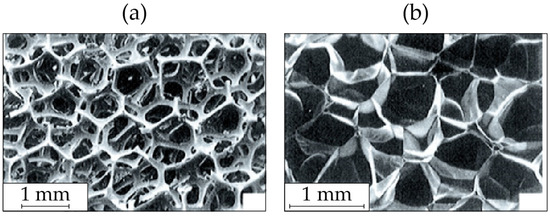 Metal foams: (a) open-cell foam and (b) closed-cell foam.