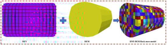 Additionally, 3DEC features a robust Discrete Fracture Network (DFN) generation capability. The DFN module treats embedded fracture groups in the rock mass as discrete, finite-planar fractures, with each fracture approximated as circular. The geometry of these fractures in the DFN model is influenced by independent statistical distributions of various parameters, including fracture size (radius), orientation, and location. The principles of model mesh discretization are illustrated in Figure 2. This detailed methodological approach enhances the model’s accuracy in simulating the complexities of fluid-structure interactions, particularly in the context of varying water pressures in fault zones.
