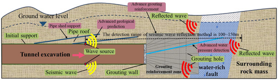 Timely decision-making and the implementation of suitable engineering measures can often prevent water inrush disasters in tunnels near water-rich faults, thus avoiding economic losses and project delays. Common preventive measures include pre-grouting reinforcement and pre-pipe roof support. Pre-grouting reinforcement densifies the rock mass, enhances the overall integrity of the rock mass, allowing a range of rock layers to bear the load together, thereby increasing its resistance to bending and shear forces. Injecting grout into rock layers via small guide tubes improves the mechanical properties of the surrounding rock. The pre-pipe roof support technique creates an integrated load-bearing structure through borehole grouting and pipe roof installation, effectively supporting and reinforcing the surrounding rock on both sides of the tunnel, and preventing collapses. This technique involves inserting steel pipes into pre-drilled holes along the tunnel excavation profile and grouting inside the pipes, combined with robust steel frame supports, forming a pre-support system for rock with poor self-stability. By predicting the potential for water inrush disasters, appropriate pre-grouting and pipe roof support parameters can be selected to ensure safe tunnel excavation while minimizing excess control and material waste.