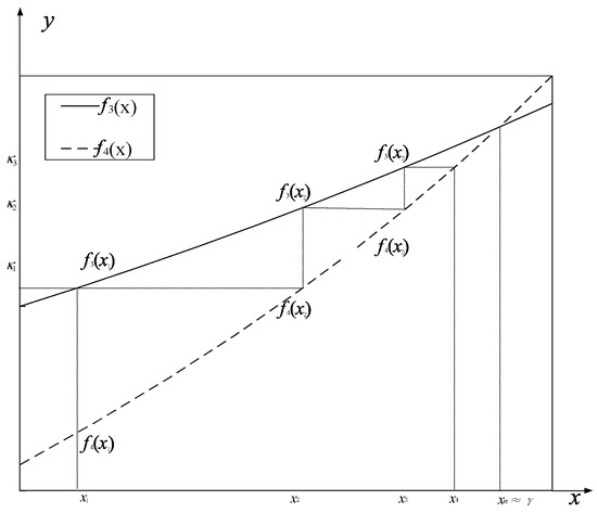 A schematic diagram of the algorithm is shown in Figure 2. As the number of calculations n increases, f3(xn) and f4(xn) will become closer in the middle of the image, and the accuracy will greatly increase.
