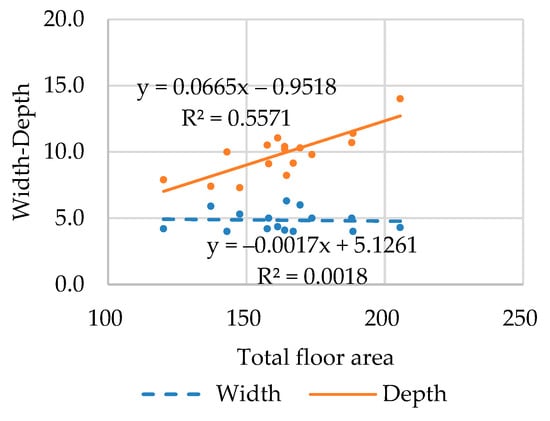 3.2.2. Width, Depth, and Total Floor Area Ratio Correlation