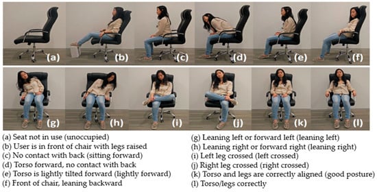Different sitting postures can vary widely, particularly in the context of ergonomics, health, and activity. Some common types of sitting postures are depicted in Figure 4.