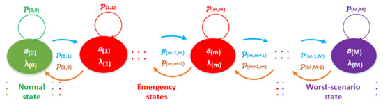 where π(m) is the probability to be in the state S(m), and m ∈ [1, 2, 3, …, M − 1].