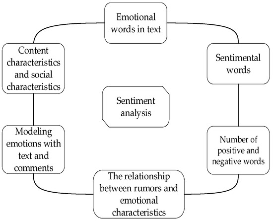 The current research on emotion analysis is developing in a more in-depth and comprehensive direction by not only focusing on emotion words and sentimental words in the text but also combining content features and social features, using big data and machine learning technology to build emotional models, and exploring the relationship between rumors and emotional features. These studies not only improve the accuracy and efficiency of sentiment analysis but also provide powerful analytical tools for psychology, sociology, marketing, and other fields. The analysis of emotional characteristics is shown in