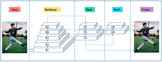 where I is the input feature map, K is the depthwise convolution kernel, P is the pointwise convolution kernel, and c represents the channels. The backbone network extracts multi-level image features by applying convolutional kernels of different sizes, providing rich information for precise object detection and pose estimation. The neck structure (Neck) connects the backbone network and the detection head, mainly through technologies such as the feature pyramid network and the path aggregation network to fuse features at different levels, enhancing the model’s ability to detect objects at multiple scales. The feature pyramid network fuses features at various scales, enabling the model to handle both large and small objects simultaneously, thereby improving the accuracy of object detection and pose estimation. The feature fusion formula of the feature pyramid network is as follows: