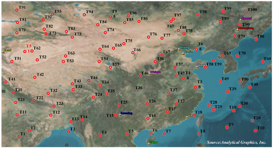- Satellite power-on time constraints: Satellite power-on time is limited by task requirements and the satellite’s status. The satellite activation time constraint is set to ensure that observation tasks are carried out during the satellite start-up hours’ active time.where and denote the shortest and longest power-on times of satellite , respectively. and denote the end and start observation times of the satellite for the target task , respectively.