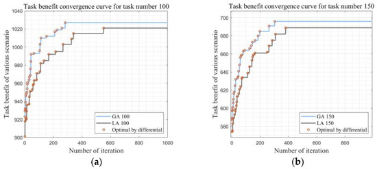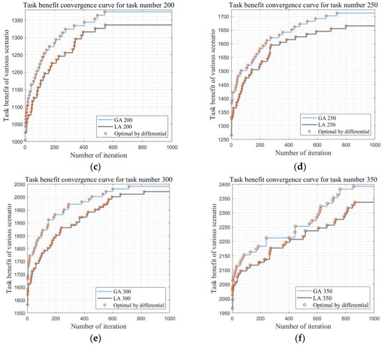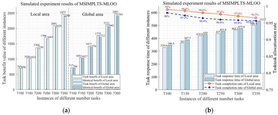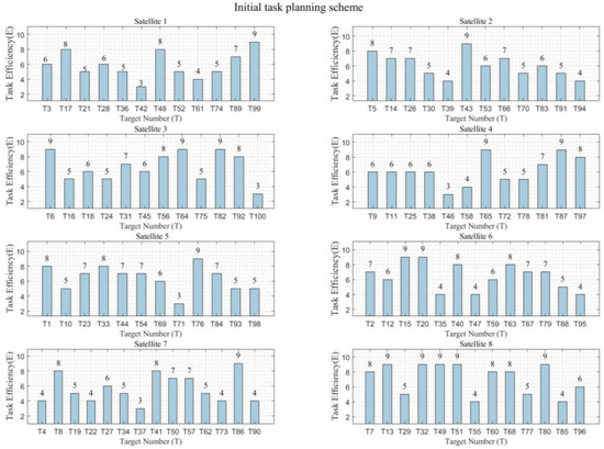 - Task execution order constraint: In cases where there is a precedence relationship between tasks, this constraint requires that a given task must be performed before another task , meaning the start time of the task must be earlier than the end time of the task .In summary, the total objective function of the MSIMPLTS-MLOO model can be expressed as a weighted sum of the objective functions from the superstructure, mesostructure, and understructure, reflecting the overall goal of multi-layer optimization. The mathematical expression for the MSIMPLTS-MLOO model’s objective function is shown in Equation (13):where, , , and , respectively, are the proportional scaling factors of task benefit, task allocation rate, and task response time. Satellite controllers can adaptively adjust the weights according to the preference demand. This work does not consider the preference situation in the experiment, so the proportionality factor is set to . The weighted solution of the optimization objective can transform the multi-objective problem into a single-objective problem.