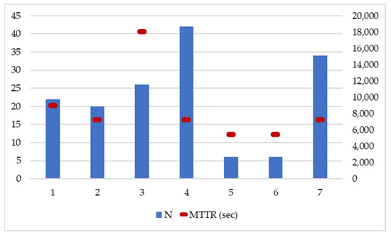 As Figure 3 shows, the most recurrent fault is linked to the barriers, in particular to the ‘Barrier does not lower’ fault, an event, however, solved on average in a few hours. Vandalism, on the other hand, is a critical event as, despite having an average frequency, it requires the most time to repair.