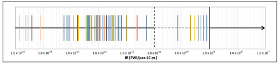 In the risk calculation phase, the combination of the risk level of all scenarios expresses the overall risk level of the HE analyzed. In particular, risk can be expressed as Total Expected Risk (R), Cumulative Risk (CR), or Individual Risk (IR) [40].