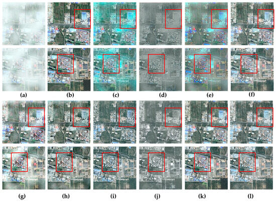 - Sun, H.; Luo, Z.; Ren, D.; Hu, W.; Du, B.; Yang, W.; Wan, J.; Zhang, L. Partial siamese with multiscale bi-codec networks for remote sensing image haze removal. IEEE Trans. Geosci. Remote Sens. 2023, 61, 4106516. [Google Scholar] [CrossRef]