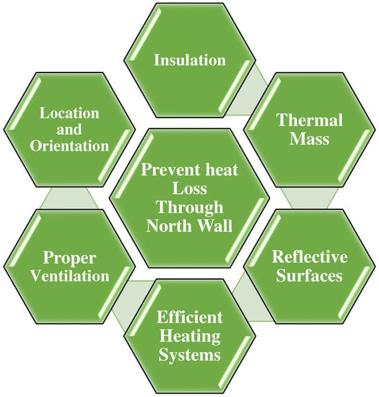 Some greenhouses use coverings on their transparent walls to reduce heat loss, but this strategy cannot significantly mitigate heat loss at night. During the day, when solar radiation is abundant, the system uses this heat to meet its demands, while the excess energy is either lost through the transparent walls or stored in the non-transparent wall. However, the amount of heat stored in this manner is minimal.