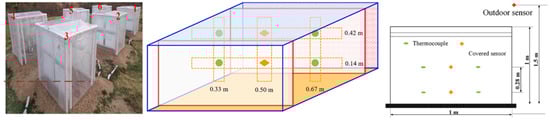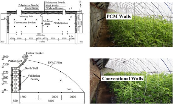 - Liu, X.; Li, Y.; Liu, A.; Yue, X.; Li, T. Effect of North Wall Materials on the Thermal Environment in Chinese Solar Greenhouse (Part A: Experimental Researches). Open Phys. 2019, 17, 752–767. [Google Scholar] [CrossRef]