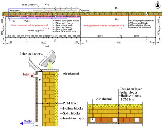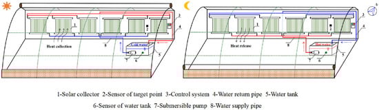 - Xu, W.; Guo, H.; Ma, C. An active solar water wall for passive solar greenhouse heating. Appl. Energy 2022, 308, 118270. [Google Scholar] [CrossRef]