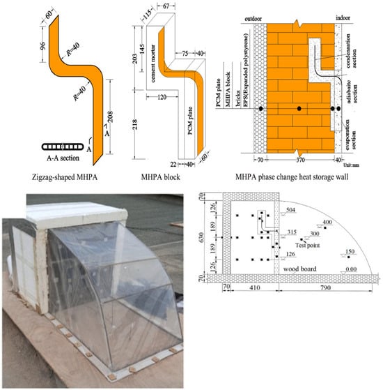 - Guan, Y.; Meng, Q.; Ji, T.; Hu, W.; Li, W.; Liu, T. Experimental study of the thermal characteristics of a heat storage wall with micro-heat pipe array (MHPA) and PCM in solar greenhouse. Energy 2023, 264, 126183. [Google Scholar] [CrossRef]