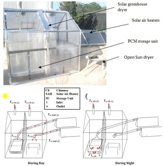 - Azaizia, Z.; Kooli, S.; Hamdi, I.; Elkhal, W.; Guizani, A.A. Experimental study of a new mixed mode solar greenhouse drying system with and without thermal energy storage for pepper. Renew. Energy 2020, 145, 1972–1984. [Google Scholar] [CrossRef]