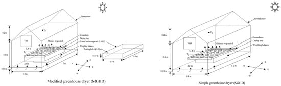 - Chauhan, P.S.; Kumar, A. Heat transfer analysis of north wall insulated greenhouse dryer under natural convection mode. Energy 2017, 118, 1264–1274. [Google Scholar] [CrossRef]