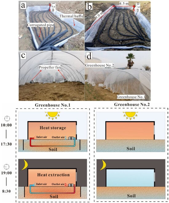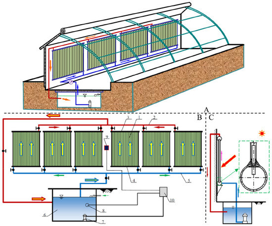 - Wang, J.; Qu, M.; Zhao, S.; Ma, C.; Song, W. New insights into the scientific configuration of a sheet heating system applied in Chinese solar greenhouse. Appl. Therm. Eng. 2023, 219, 119448. [Google Scholar] [CrossRef]
