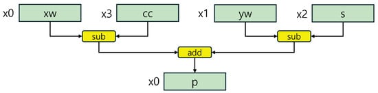 In this paper, Algorithm 6 was implemented with fewer instructions than before by using the ‘madd’ instruction, which can perform multiplication and addition operations with one instruction. The implementation corresponds to line 7 of Algorithm 6. In line 7, to calculate the z value, one multiplication and two addition operations are performed using values such as yw, s, xw and cc. [Implementation 3] is the assembly code for calculating the z value. In the code before optimization, you can see that the process of calculating ‘mul’ and ‘add’ is combined into one ‘madd’ instruction. The detailed description is available in Table 10.