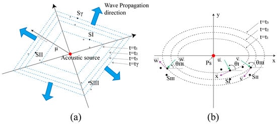 Park et al. [] introduced a localization method for an AE source that produced a rhombic or elliptical wavefront surface, as shown in Figure 8a.