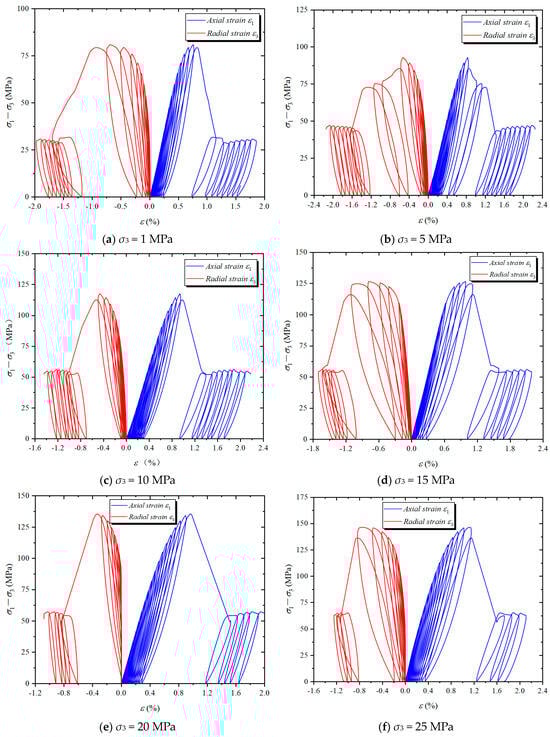 3.2. Triaxial Cyclic Test Results of Sandstone