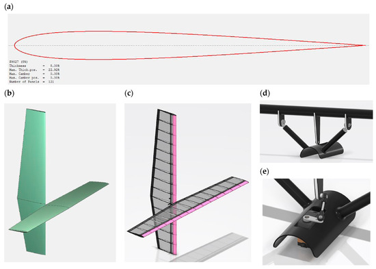 The wing is considered the most important element in the construction of contemporary aircraft. Alongside the propulsion system, it constitutes a crucial structural component for performance. In the case of muscle-powered aircraft, it is particularly important due to the proportion of dimensions relative to the fuselage and the necessity to maintain appropriate total mass. The literature on the subject lists components describing the geometry of the wing, with the most significant being wing planform area and the airfoil section [46].