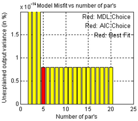 The identification system model is set as a single-input and single-output linear constant system, and the difference equation is shown in Equation (29). Determine the system order by using the Akaike information criterion (AIC) according to Equation (29), and the AIC is defined as shown in Equation (30):