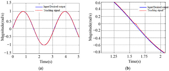 As can be seen from Figure 10, both methods can track the given sinusoidal speed signal well, but when the speed exceeds zero, HO-ADRC is less affected by friction, and the impact is half the impact of the PID. Figure 10b shows the deviation comparison of the two methods by the sinusoidal velocity signal input. At a speed over zero, the PID is 0.146 rad/s, compared with 0.077 rad/s of the HO-ADRC.