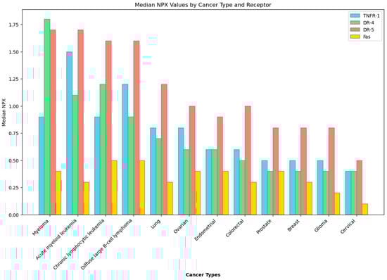 Expression of death receptors in different cancer types. Data obtained from the Human Protein Atlas. NPX—Normalized Protein eXpression.