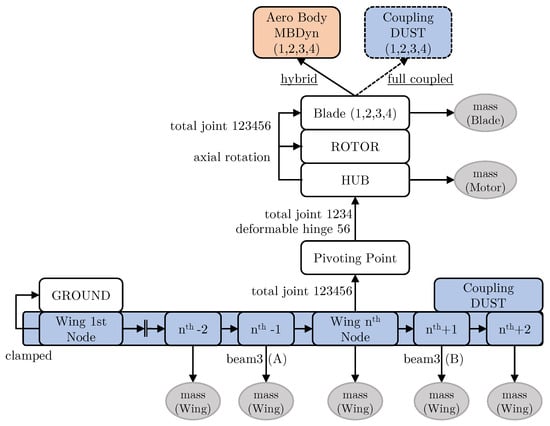 Sketch of the coupled wing-propeller model in MBDyn–DUST.