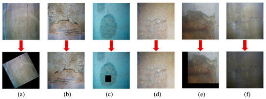 After performing underwater defect image acquisition, the acquired images were processed using various data enhancement methods to further expand the training data and improve the performance of the detection network. Data enhancement helped to maximize the use of limited data resources and make them more valuable. The specific effect of each type of data enhancement is shown in Figure 12. By performing data enhancement on the image data, more data samples were generated, the size of the dataset was expanded, and the overdependence of the model on the training data was reduced, which was very helpful in avoiding overfitting and improving the generalization ability of the model during training. At the same time, the expanded new images introduced randomness or variability, and the model needed to adapt to a variety of different data variations, making the model robust.