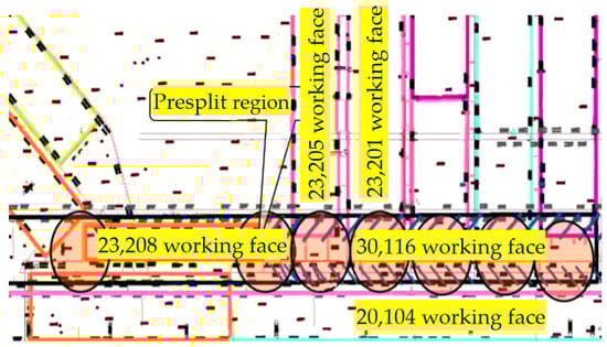 The 3−1 seam studied here is located in the upper part of a seam (which is split into two consecutive seams) and acts as the main seam. This coal seam has the characteristic of medium thickness, with a recoverable area of 22.66 km2, burial depth of 0–173.26 m, and thickness of 0–4.81 m (average thickness of 2.58 m). The 2−2 coal seam and the 3−1 coal seam of the Yanghuopan Mine are adjacent seams, and the thickness of the rock strata between them is about 23 m. The rock strata between the seams are hard, and part of the area above the working face of the 3−1 seam, 30,116, is part of the working face of the 2−2 coal seam. Above the working face, there are coal pillars left after the mining of several workings in the 2−2 coal pan area. The 30,116 working face in the 3−1 coal seam is under the loading of coal pillars in the 2−2 coal seam and the overlying rock layer, and there is a stress concentration phenomenon on the roof plate of the lower coal seam in the area of the stopping line, which is very prone to the occurrence of dynamic pressure in the mining field. In the mining of the upper seam, there is a permanent coal pillar in the working face, and as the air space on both sides of the coal pillar continuously falls and compacts, part of the weight of the rock body above and the over-supporting pressure formed during mining will be concentrated on the coal pillar, resulting in concentrated stress. This concentrated stress is transmitted downward, which will lead to an increase in rock fissures on the top plate of the lower coal seam and intensify the broken top plate of the coal seam. When the lower working face advances to the area affected by the concentrated stress of the coal pillar, severe flaking of the coal wall and the top of the end face will occur. If the masonry beam structure is in an unstable structural condition after breaking the overburden key layer after mining the upper coal seam, the masonry beam structure after breaking the lower key layer structure during mining of the lower coal seam will be prone to slipping and destabilization and the mine pressure at the working face will be abnormally strong. Furthermore, the working face of the lower coal seam will be prone to livid loaded mine pressure, and even to pressure frame accidents similar to those under the conditions of the overburden single key layer and composite single key layer structure during mining of the upper coal seam [,]. Therefore, the main threat to the safety of the comprehensive mining working face is the stress concentration problem when the close coal seam is mined under the coal pillar.