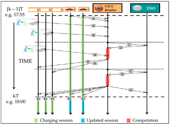 Similarly, the states of all charging EVs are retrieved at the beginning of the sampling interval, rather than after each CR. This minimizes data exchange and ensures that data are available for control calculations at the scheduled time instants. Figure 2 illustrates the flow of operations based on this refined approach.